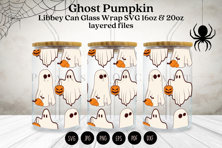 Ghost Pumpkin Halloween Libbey Glass Can Wrap SVG