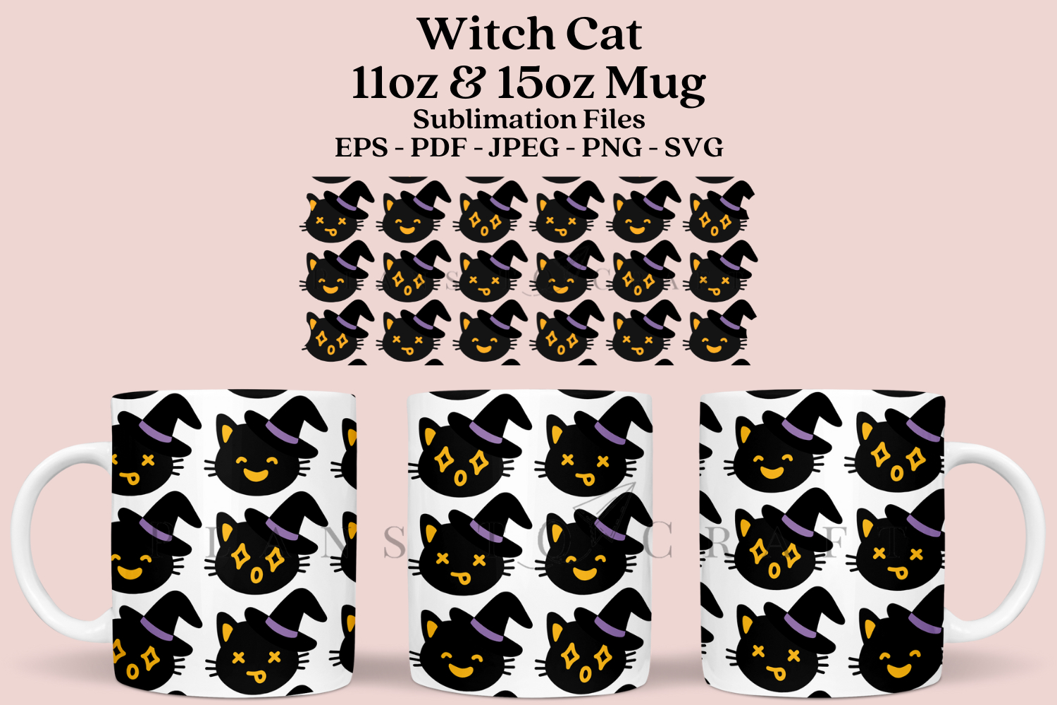 Witch Cat Halloween template for glass mug 11oz and 15oz full wrap, SVG, PNG, JPG, PDF, DXF, EPS for Cricut, Silhouette, and sublimation.Features:
