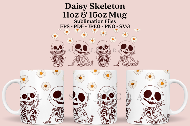 Daisy Skeleton Halloween 11&15oz Mug Sublimation Wrap