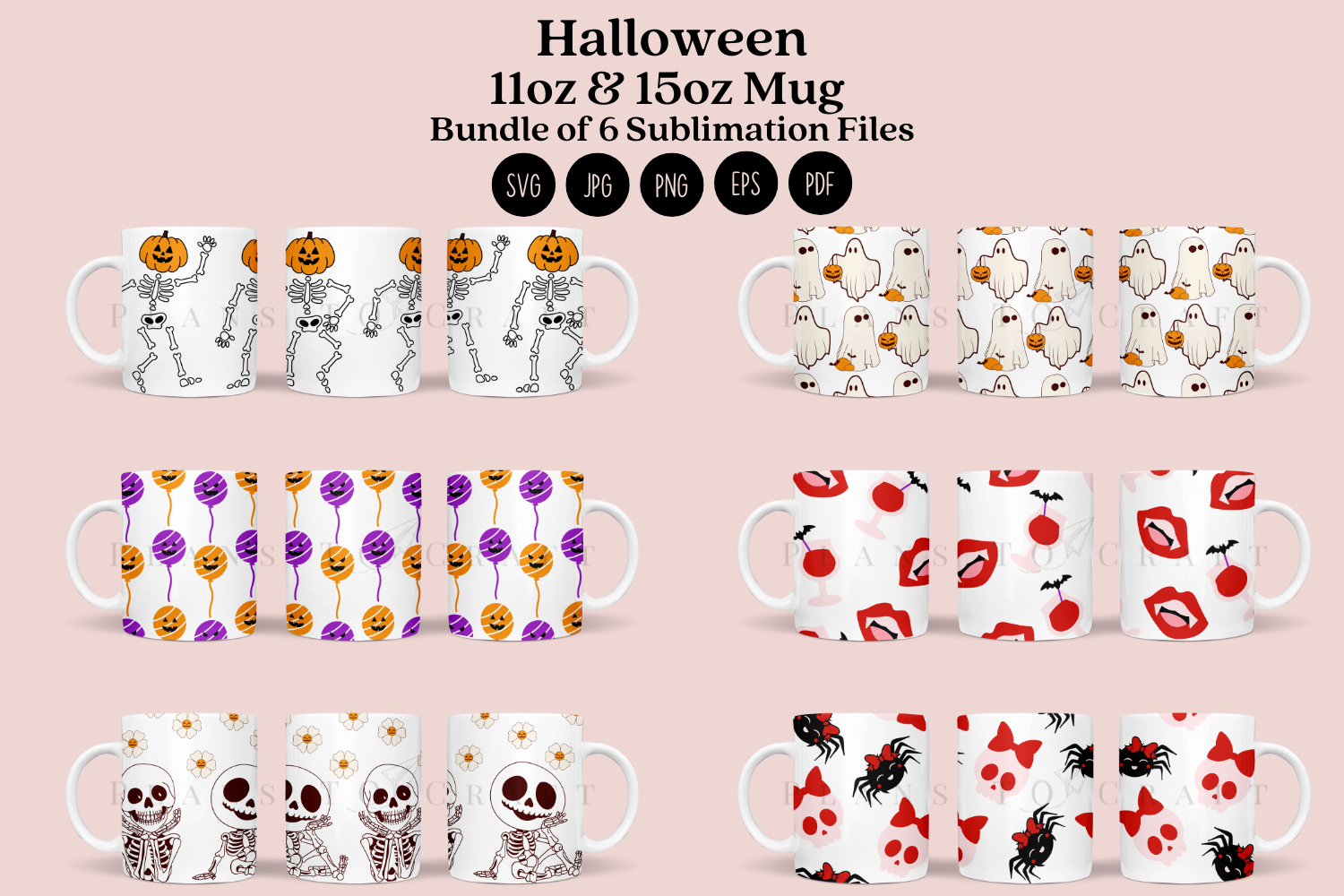 Bundle 6 Halloween 11&15oz Mug Sublimation Wrap SVG