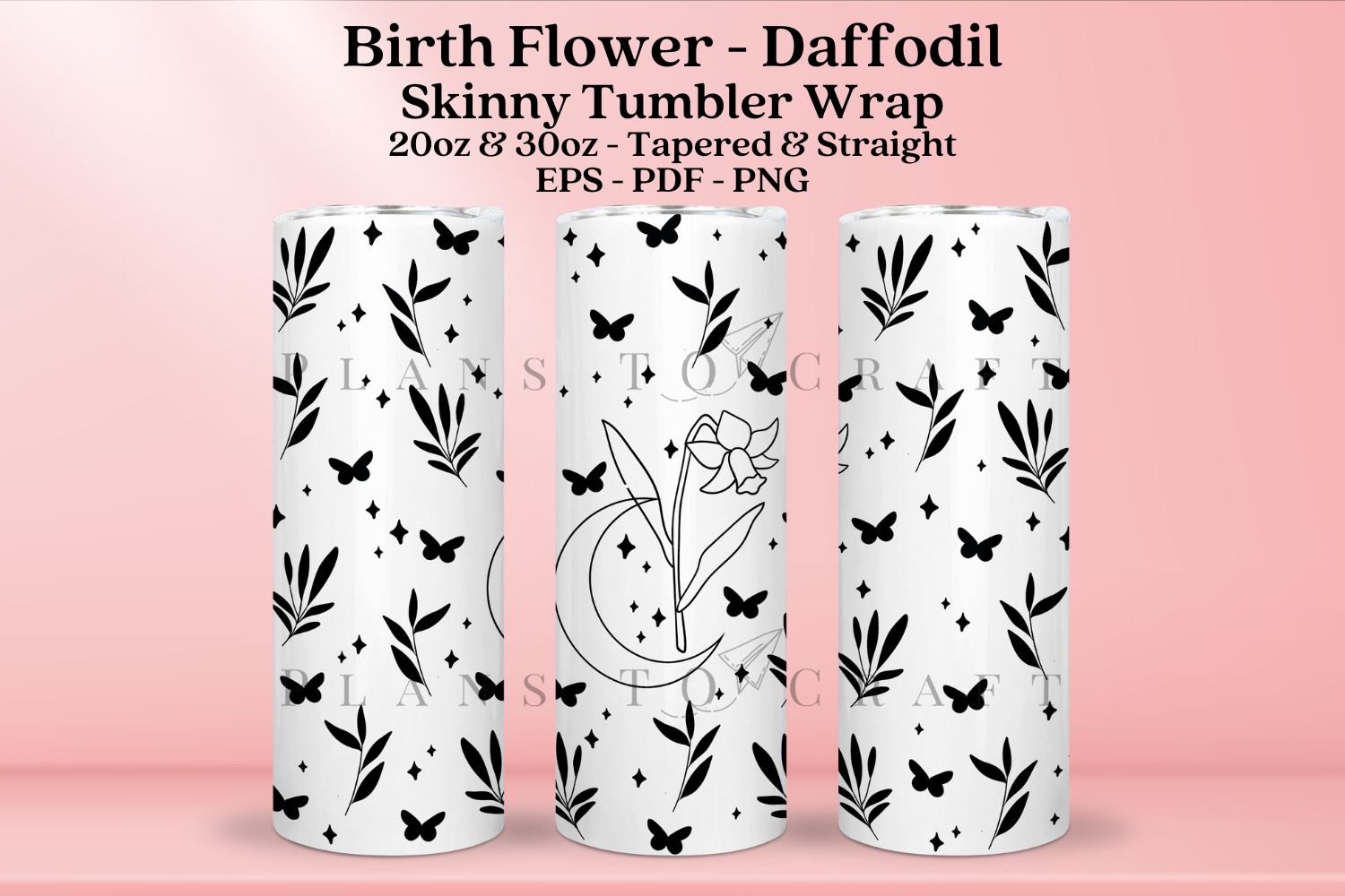 Daffodil Birth Flower Skinny Tumbler Sublimation Wrap PNG EPS PDF, instant download.Features: