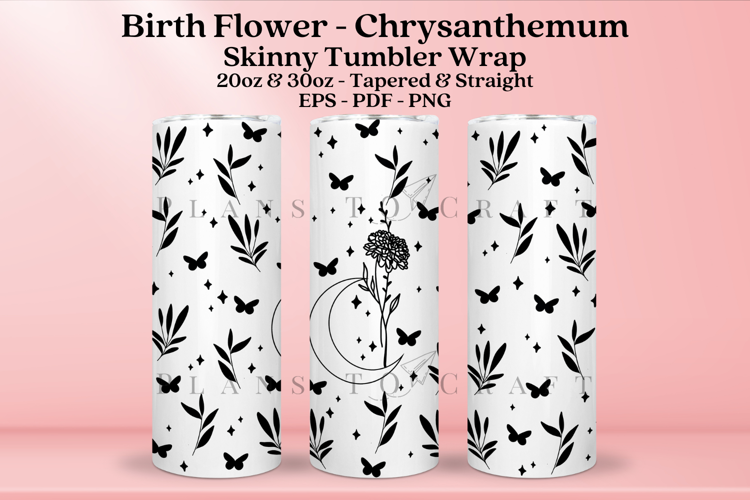 Chrysanthemum Birth Flower Skinny Tumbler Sublimation Wrap PNG EPS PDF, instant download.Features: