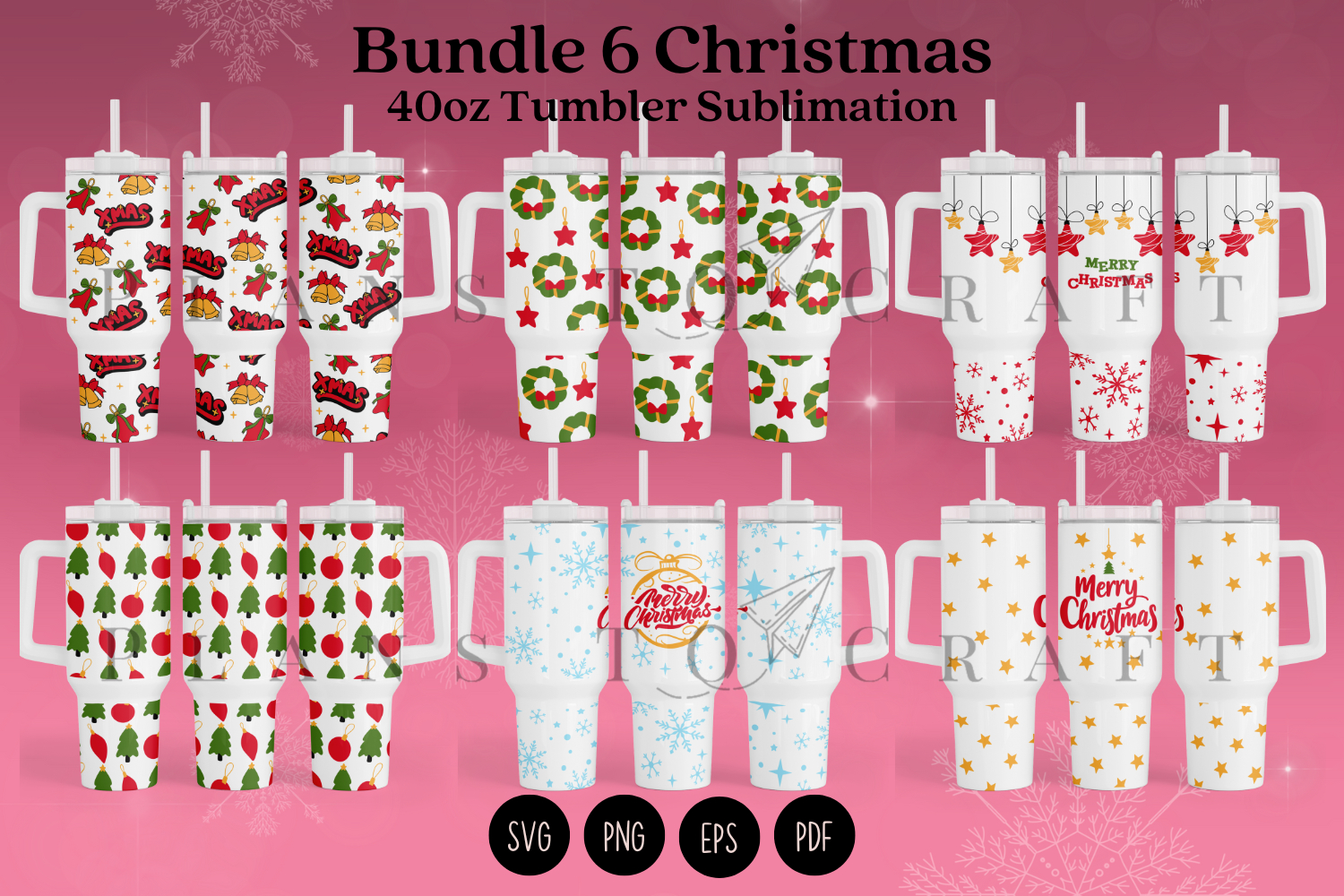 Bundle 6 Christmas 40oz Tumbler Sublimation Wrap SVG