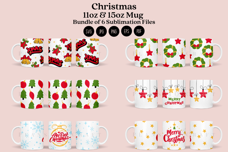 Bundle 6 Christmas Mug Sublimation Wrap SVG 11oz - 15oz