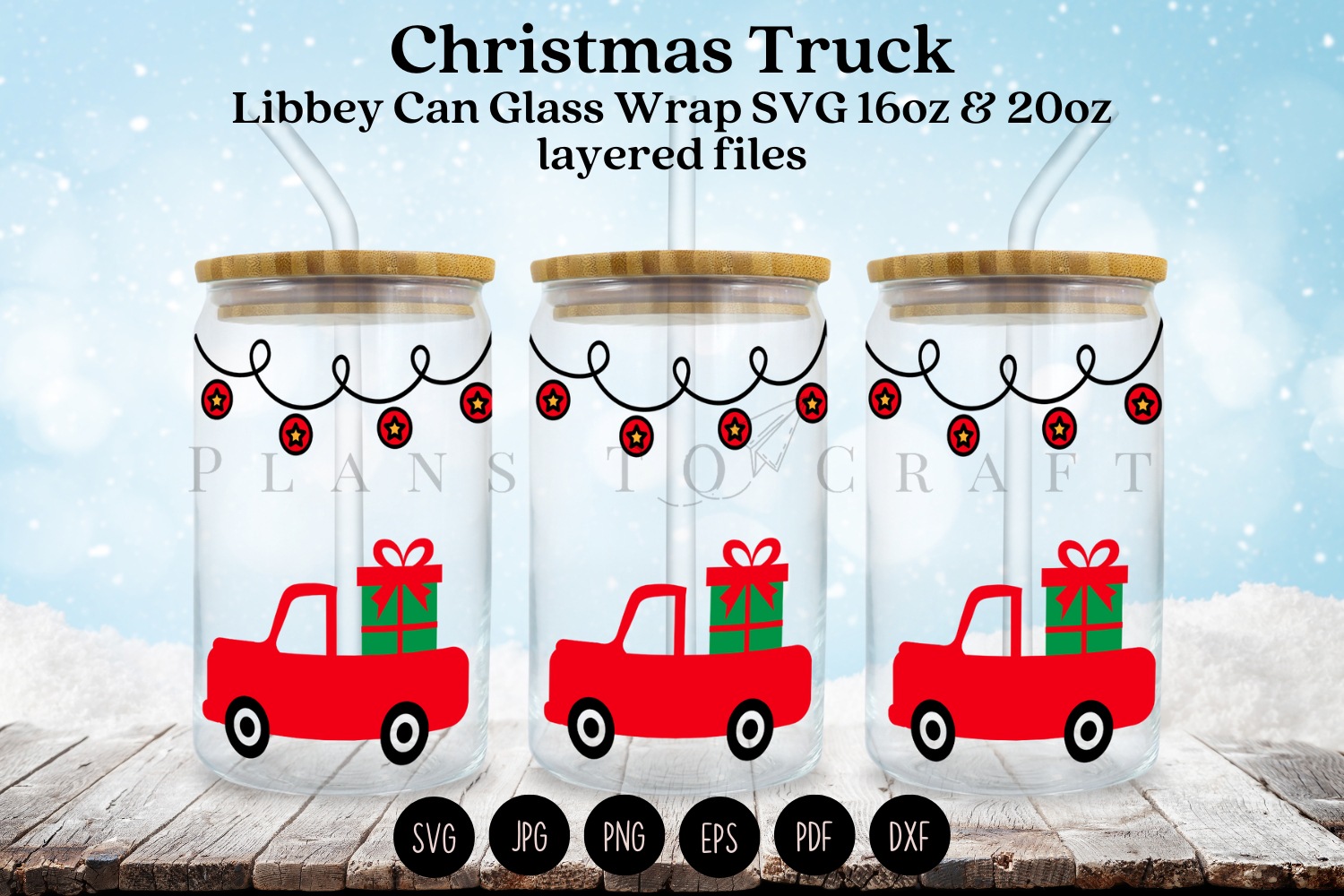 christmas truck beer glass can full wrap for Libbey Glass 16oz and 20oz PNG, DXF, SVG, JPG, EPS, PDF for Cricut and Silhouette, digital download.
