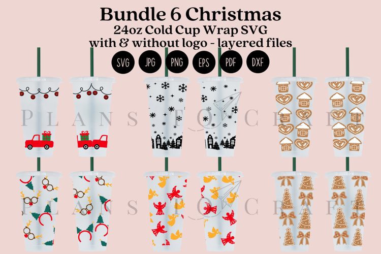 Bundle 6 Christmas 24oz Cold Cup Tumbler Wrap SVG