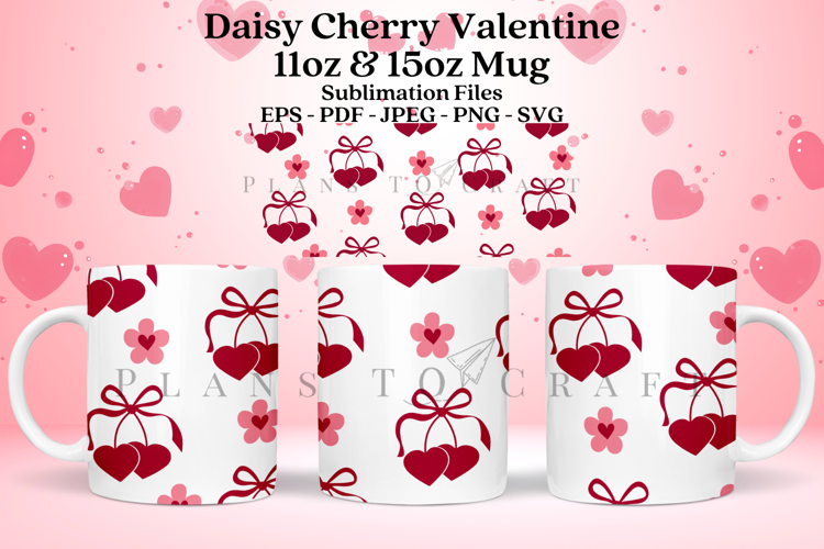 cherry daisy valentine coffee mug sublimation wrap glass mug wrap svg presized for 11oz and 15oz glass mug are sublimation files