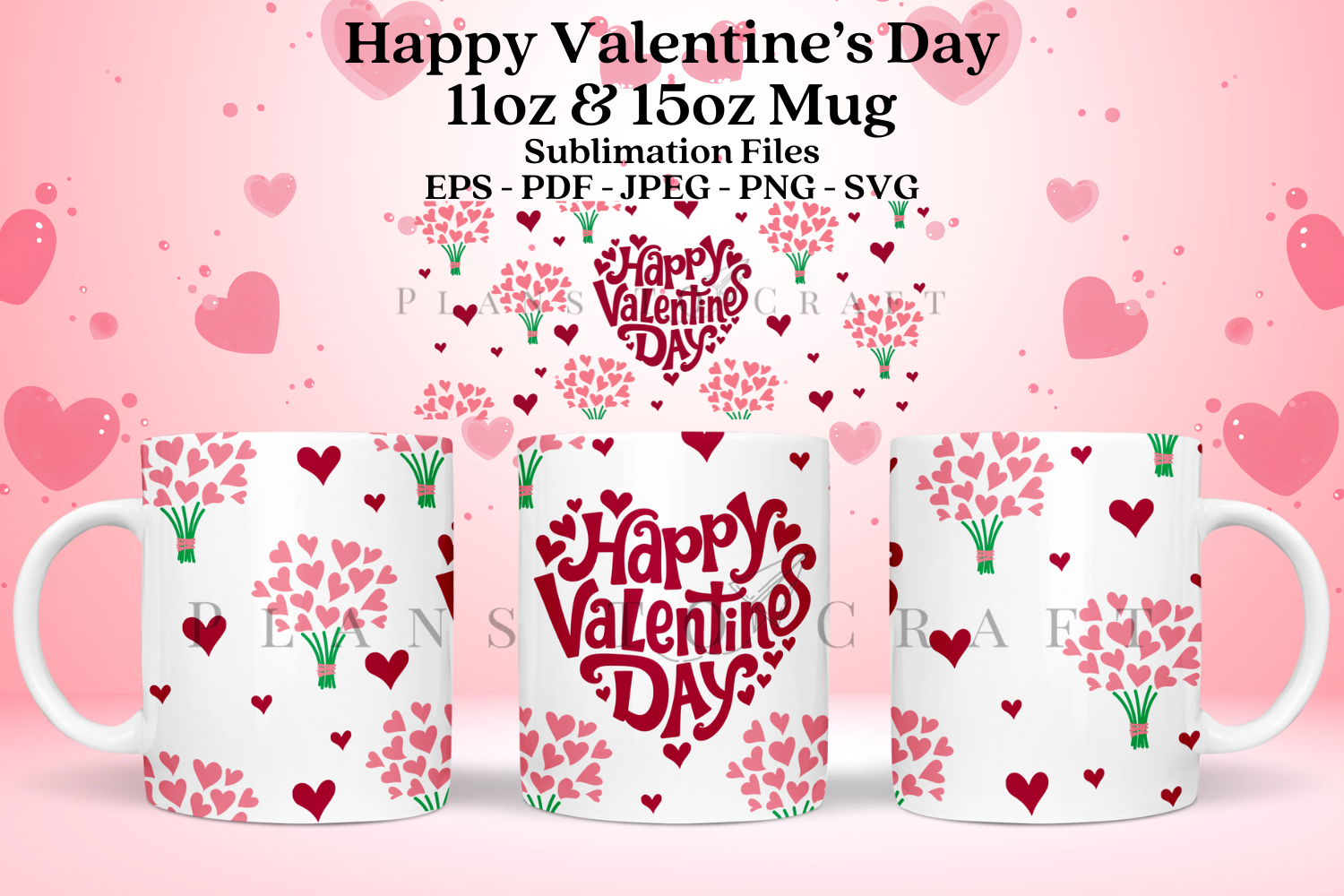 happy valentine day template for glass mug 11oz and 15oz full wrap, SVG, PNG, JPG, PDF, DXF, EPS for Cricut, Silhouette, and sublimation.