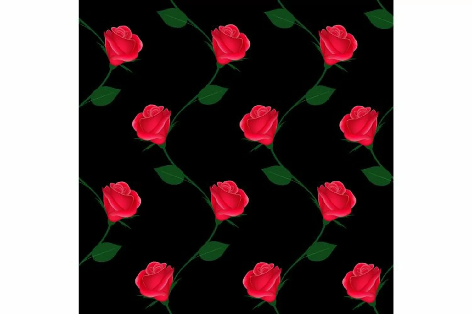 Branches of roses on a black background, vertical seamless pattern. Features :