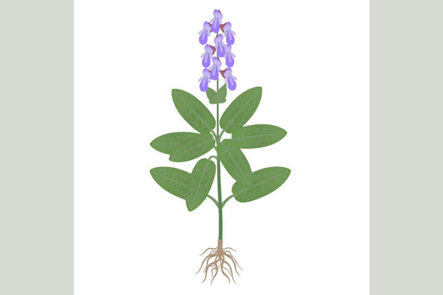 Similar Design Products to Sage plant with flowers and roots on a white background.