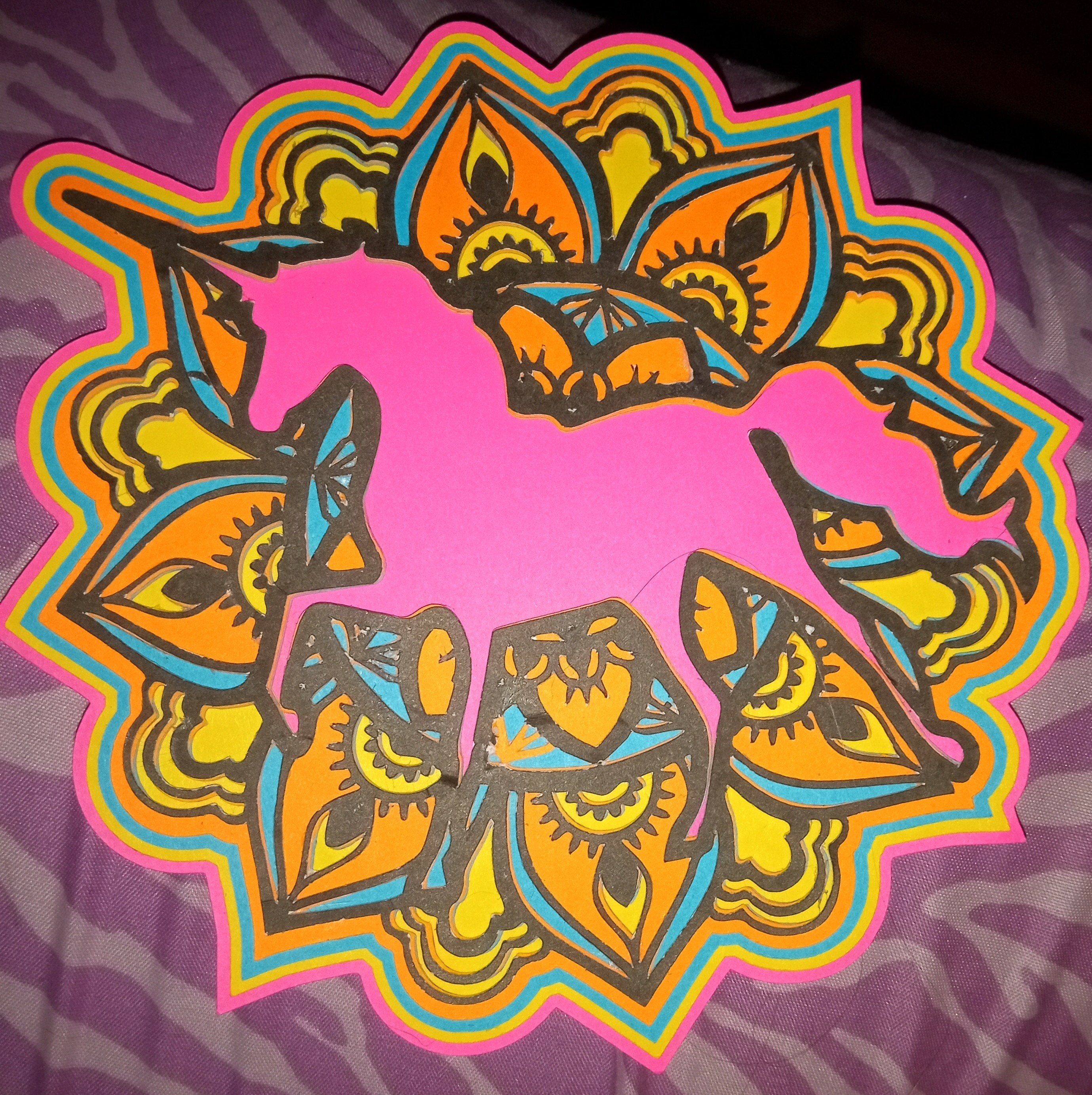 This layered Unicorn Mandala 3D design consists of 5 easy to cut and put together layers.