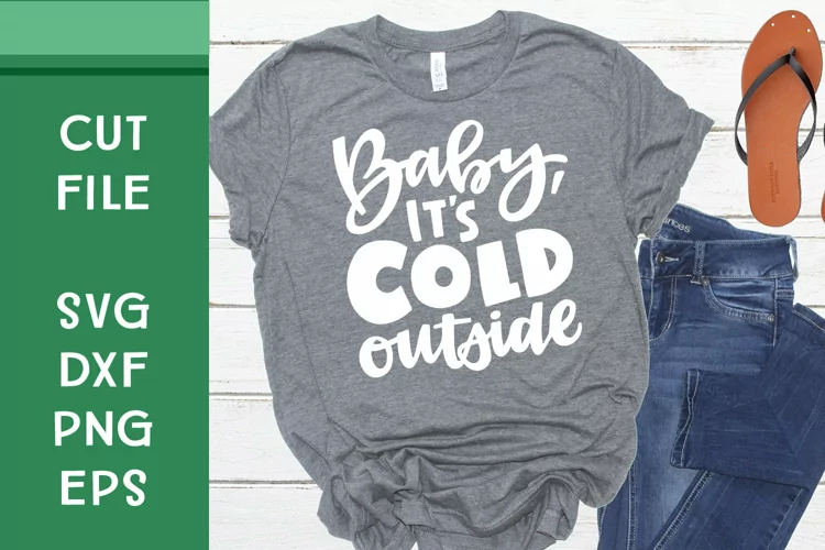 This is a hand lettered cut file. It reads, "Baby, it's cold outside."