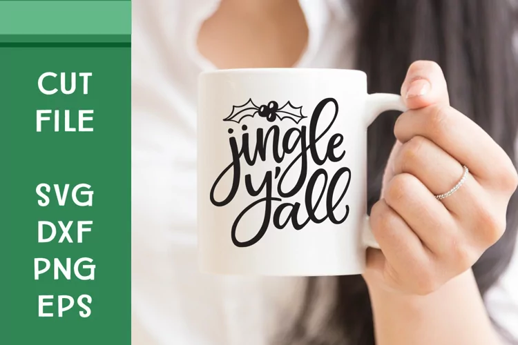 This is a hand lettered cut file. It reads, "Jingle Y'all"
