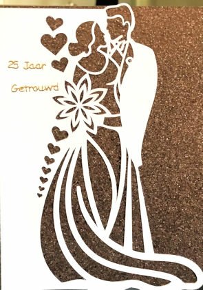 Presenting Beautiful Half Edge wedding card cover template with decorations showing couple. Easy papercut design, Just print and cut with scissors and cutters, A perfect design which can be used as Gifts, Home Decorations and as a sign for special day. Print Ready, You can use Cutting Pad or you can add colors first and then print it using different methods and machines and specially designed for glowforge.