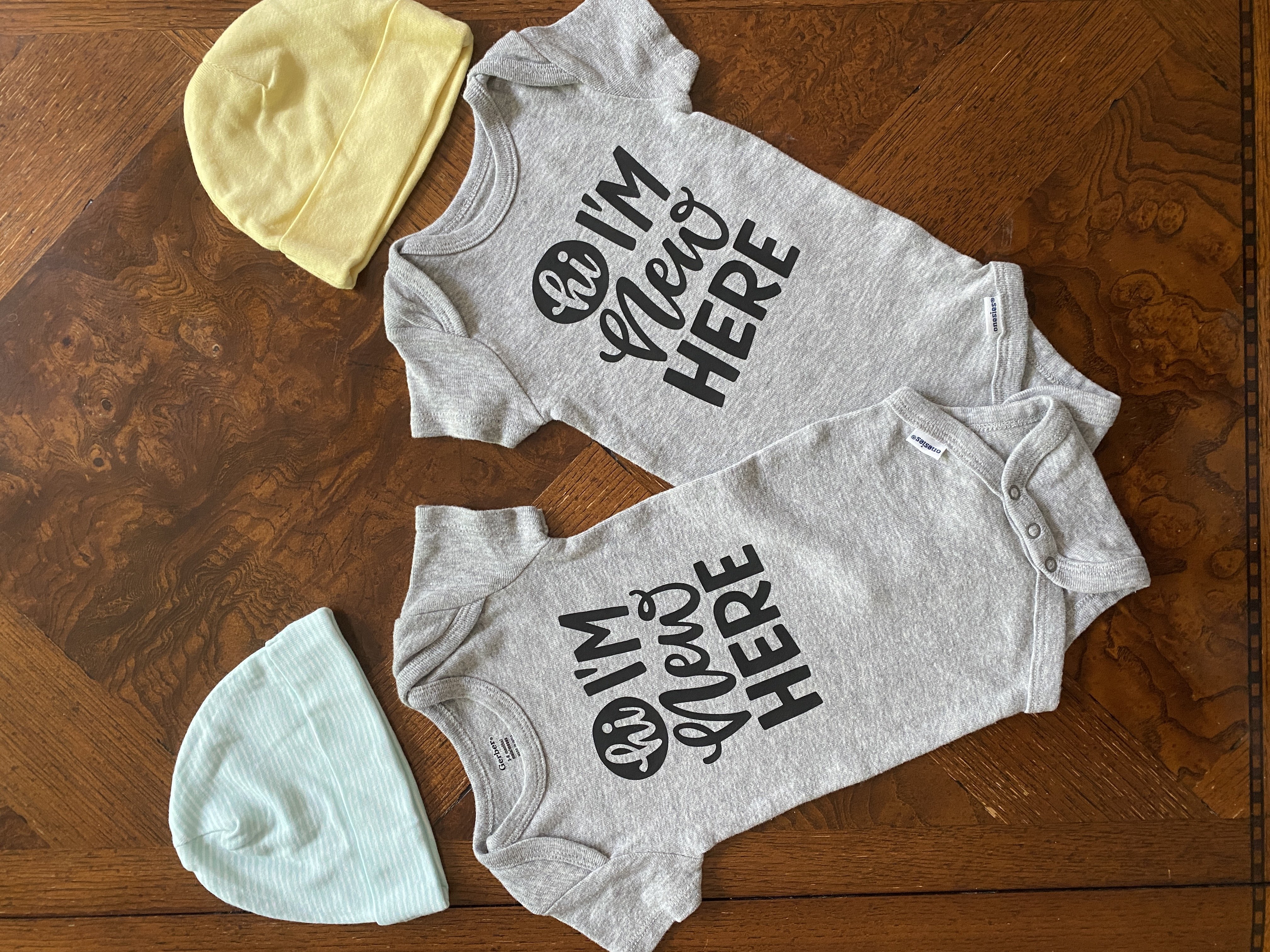 This is a hand lettered cut file. It reads, "Hi I'm New Here."