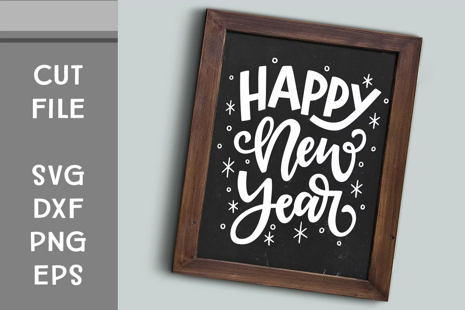 This is a hand lettered cut file. It reads, "Happy New Year."