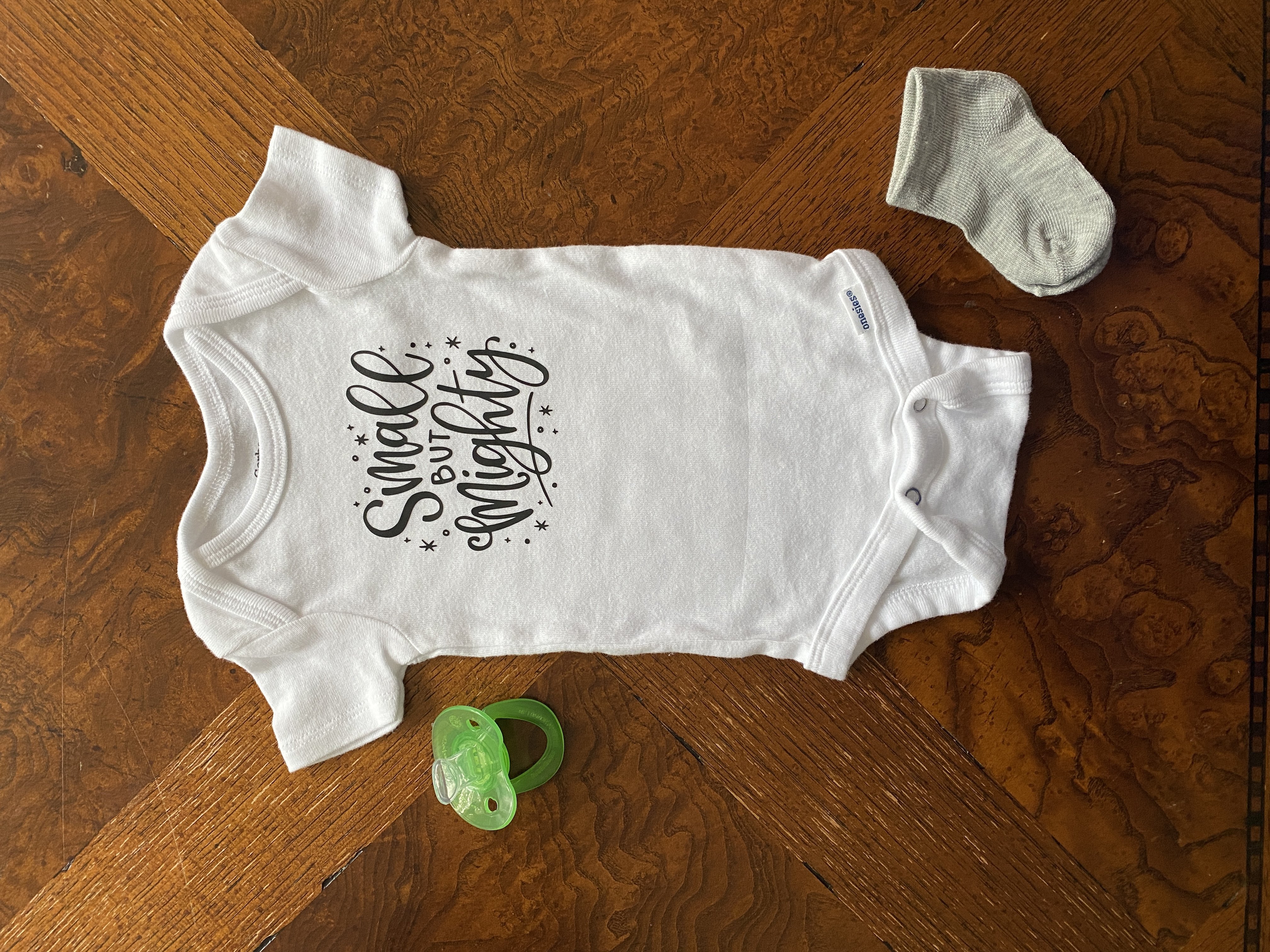 This is a hand lettered cut file. It reads, "Small But Mighty."