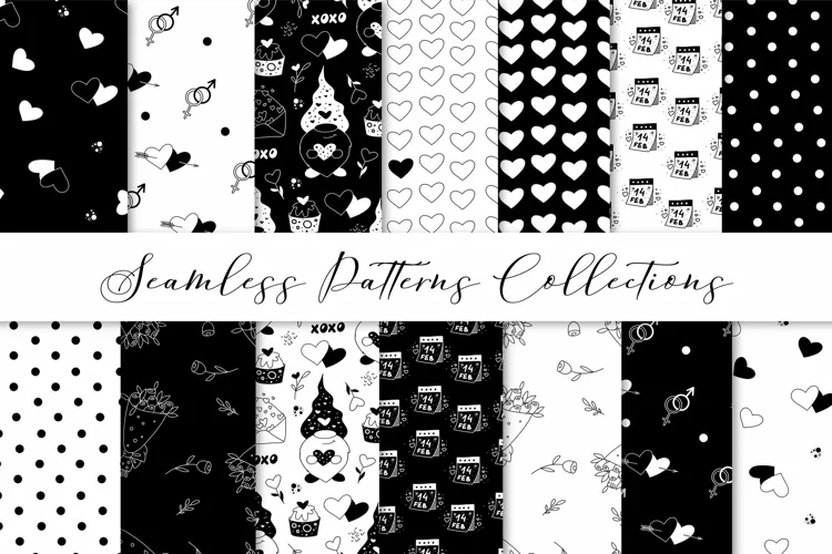 Valentine’s Day Doodles Seamless Patterns Set