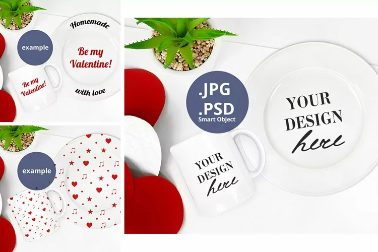 Would you like to make your Valentine's Day designs to sell more? Let this Coffee Mug & White Plate Mockup help them pop!