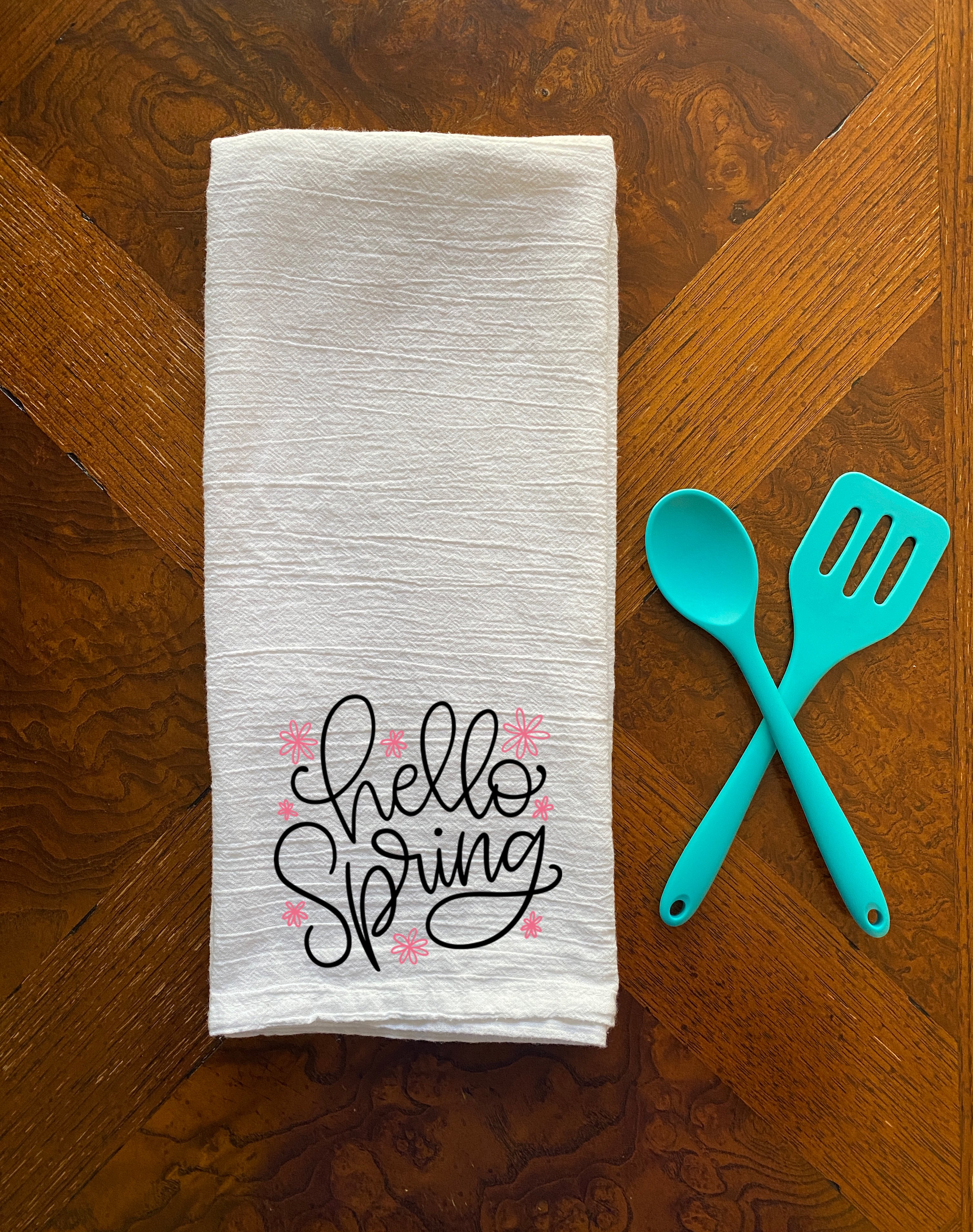 This is a hand lettered cut file. It reads, "Hello Spring." It's decorated with daisy doodles.