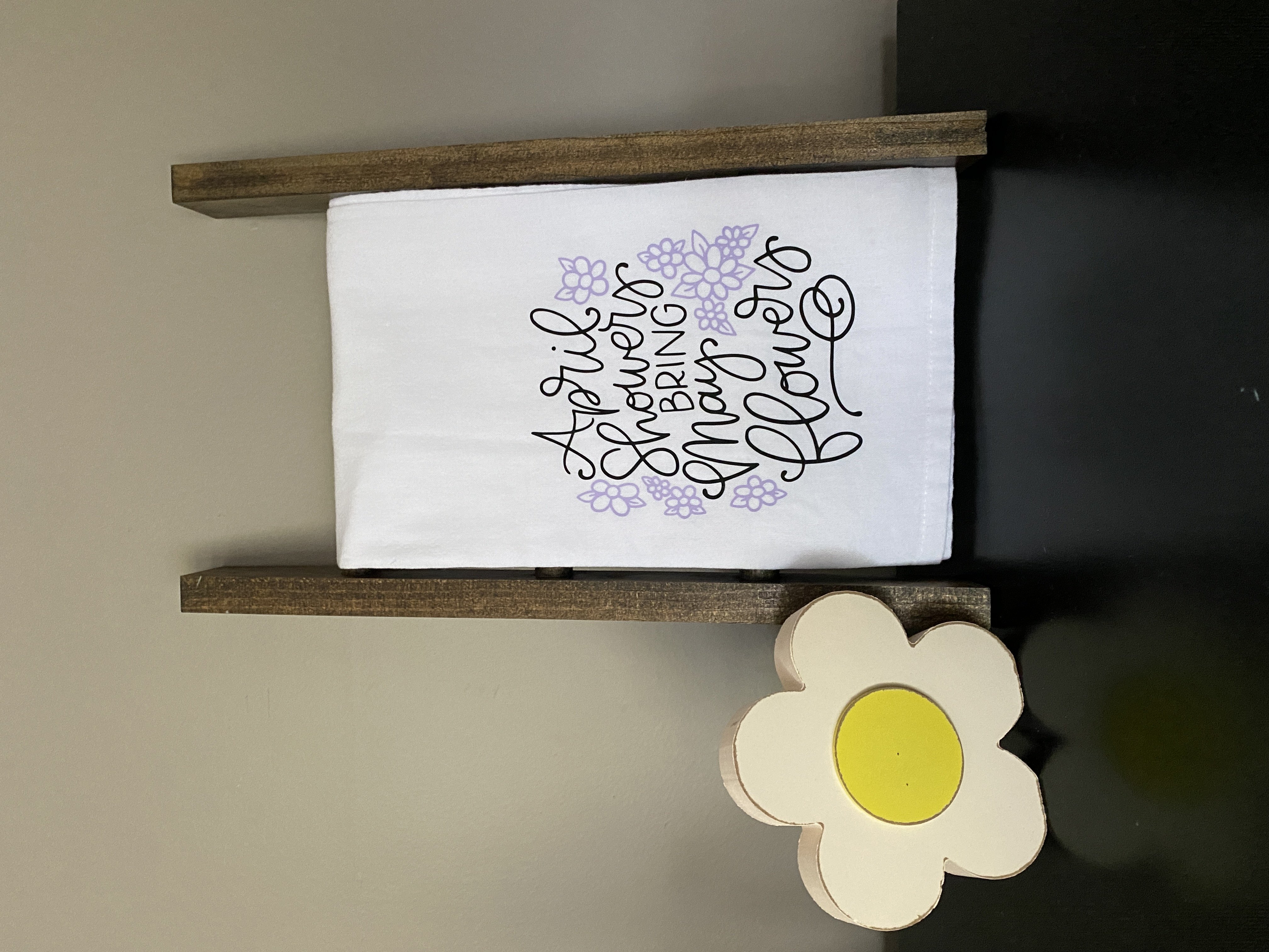This is a hand lettered cut file. It reads, "April Showers Bring May Flowers." It is decorated with flower doodles.