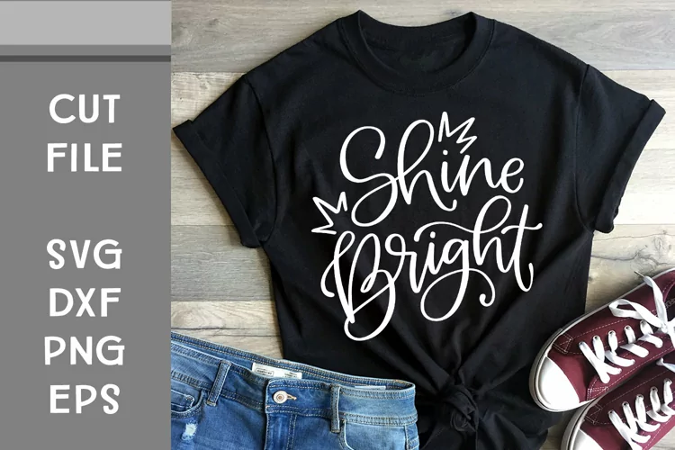 This is a hand lettered cut file. It reads, "Shine Bright."