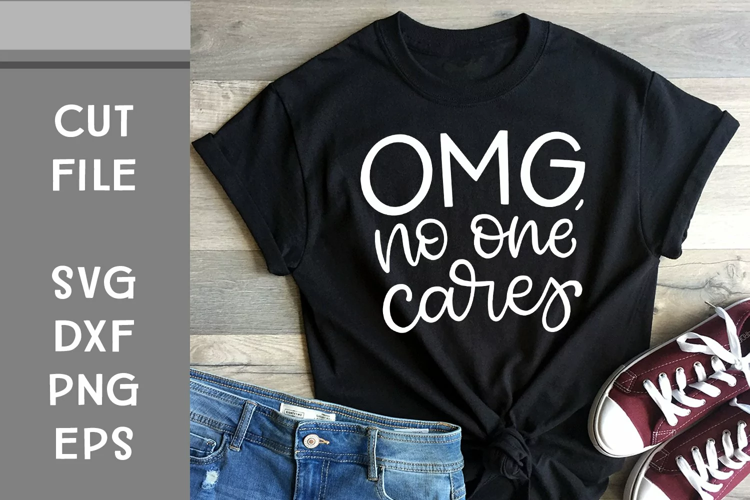 This is a hand lettered cut file. It reads, "OMG, No One Cares."