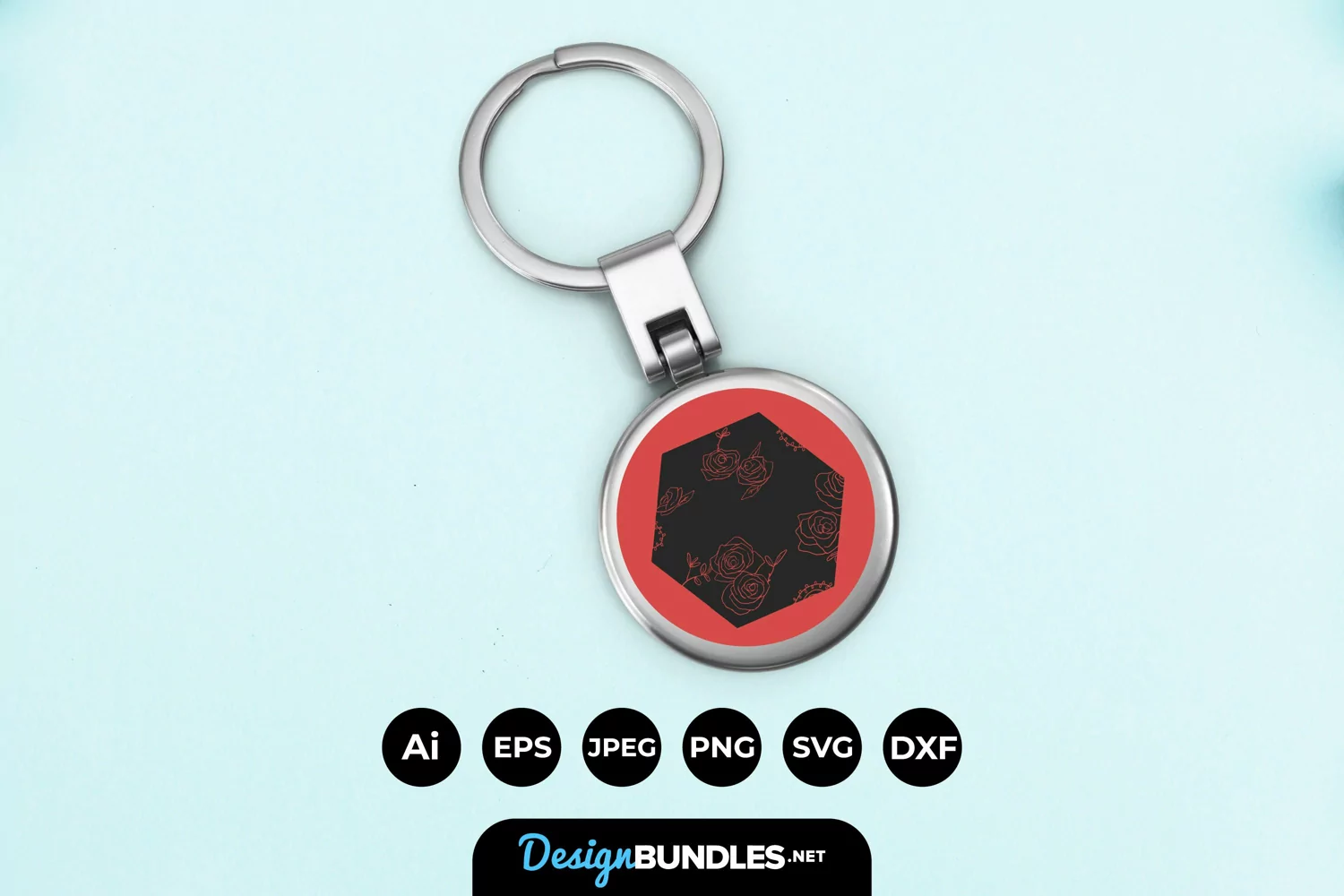 Flowers in Hexagonal Keychain