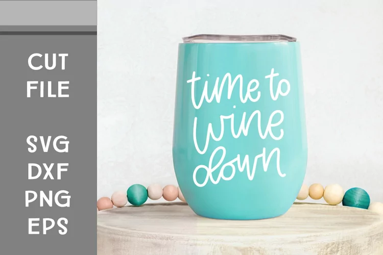 This is a hand lettered cut file. It reads, "Time to Wine Down."