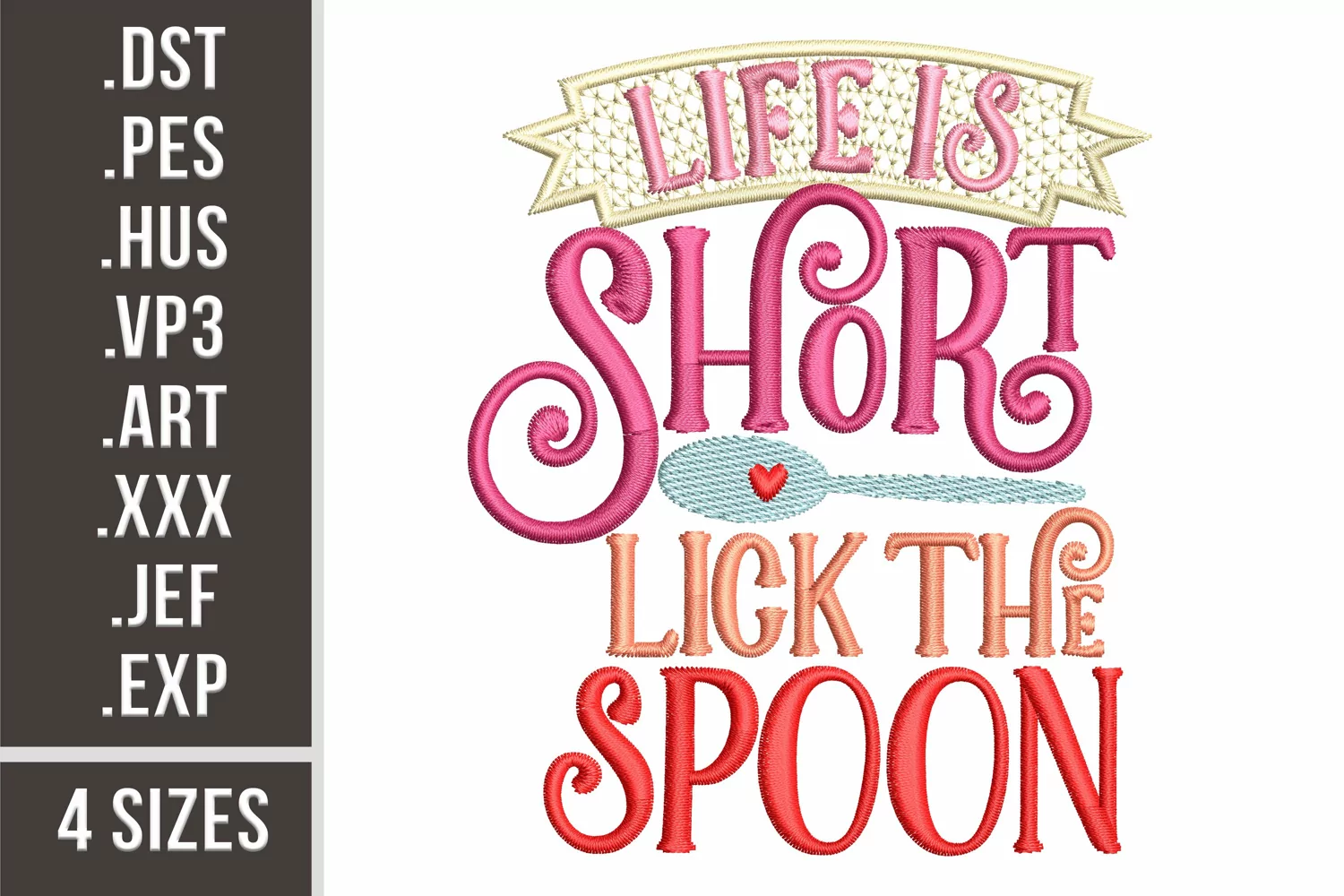 Embroidery: DST, PES, HUS, JEF, EMB, XXX, ART, VP3