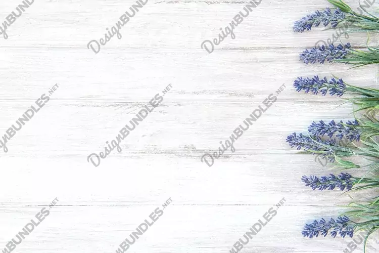 Floral template lavender flowers on wooden background