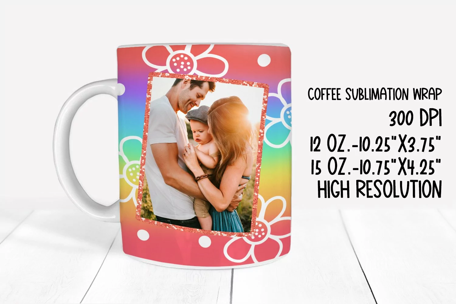 Image is transparent add your photos behind image to create a personalized coffee mug
