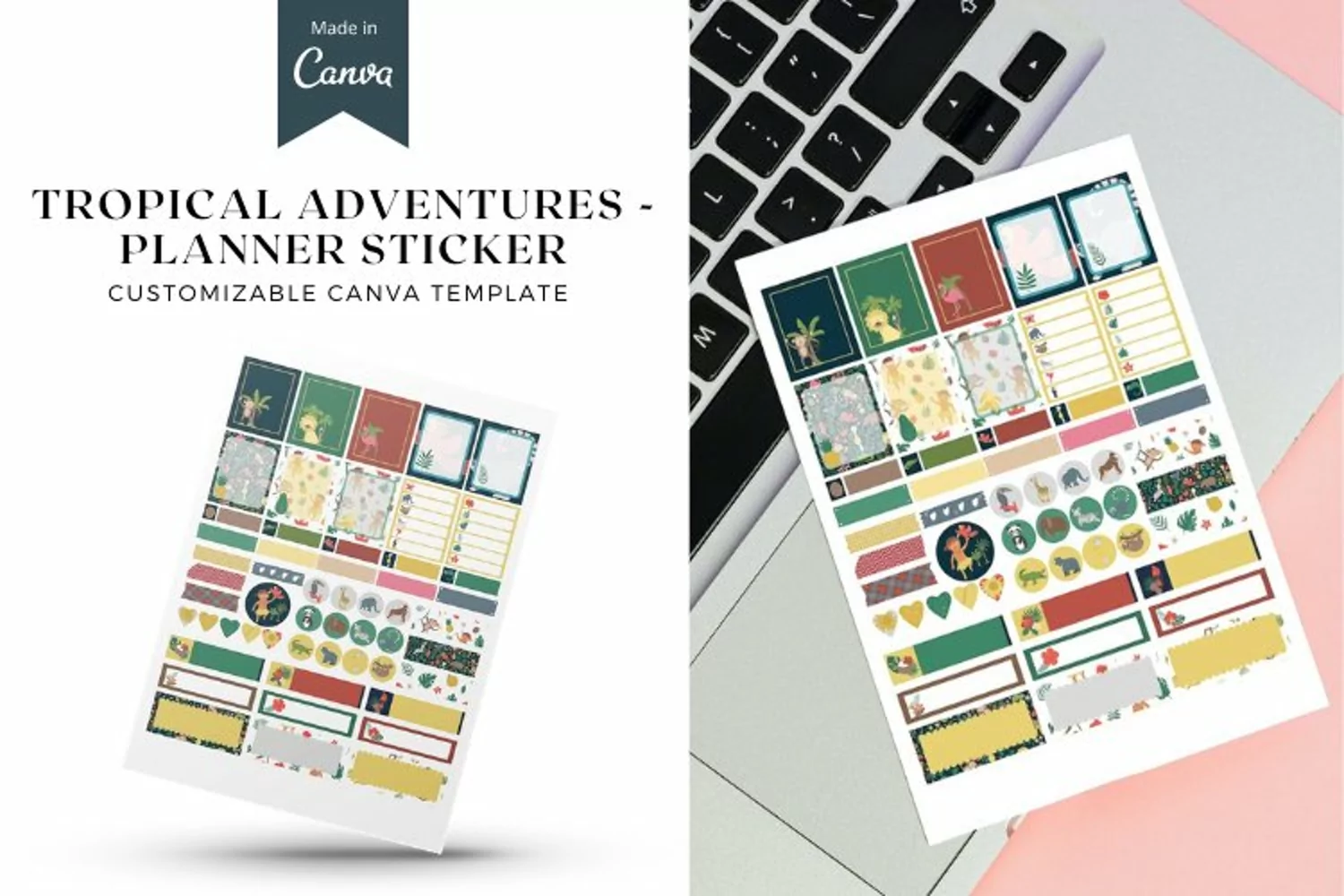 TROPICAL ADVENTURES - PLANNER STICKER, Canva Template
