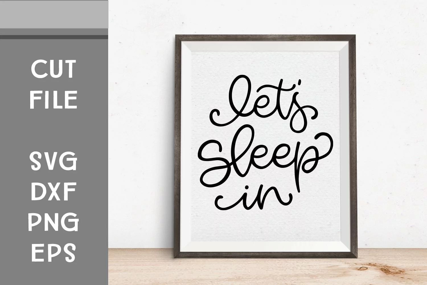 This is a hand lettered cut file. It reads, "Let's Sleep In."