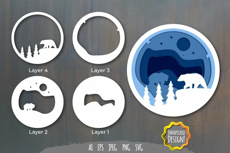 Starry Night Bear Layered Papercut 3D