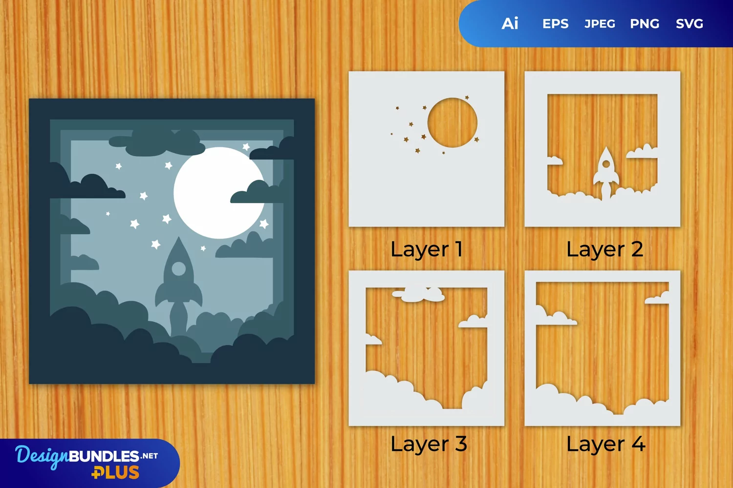 Rocket Layered Papercut 3D