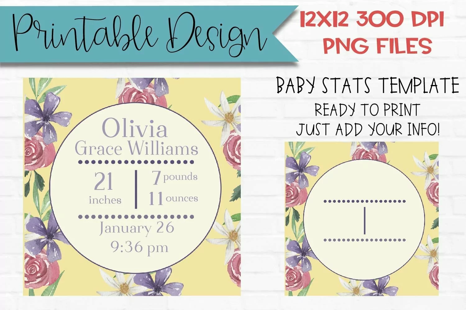Check out this Floral Baby Stats Template Sublimation Design Printable Letters!