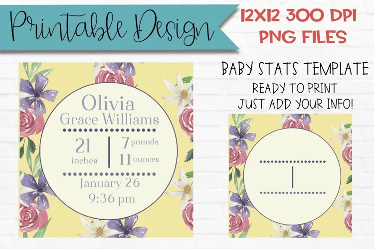 Floral Baby Stats Template Sublimation Design Printable