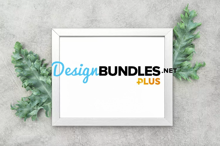 Picture frame mock up with green leaves decoration