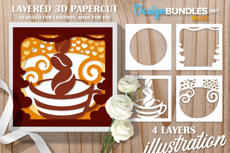 Presenting 3D Coffee cup with Beans and Curls as Smoke and Hearts layered Lightbox template. Easy papercut design, Just print and cut with scissors and cutters, A perfect design which can be used as Gifts, Home Decorations and as a sign for special day. Print Ready, You can use Cutting Pad or you can add colors first and then print it using different methods and machines and specially designed for glowforge.