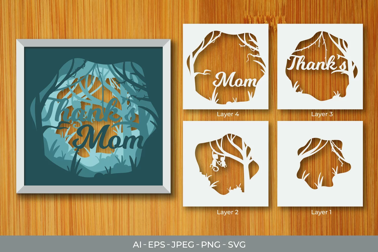 Thanks Mom Layered Papercut 3D