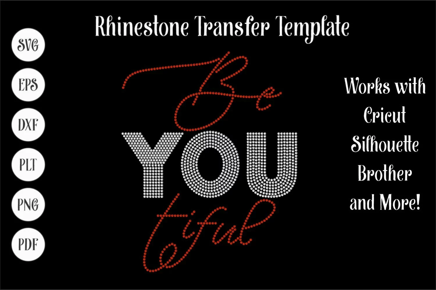 Rhinestone digital downloads are the perfect way to grow your design base and offer your clients on trend, as well as beautiful and classic designs. This rhinestone instant download template includes the following formats: SVG, EPS, DXF, PLT, PNG and PDF, ensuring it is compatible with a wide variety of cutting software and machines, including the Silhouette, Cricut, and Brother software.