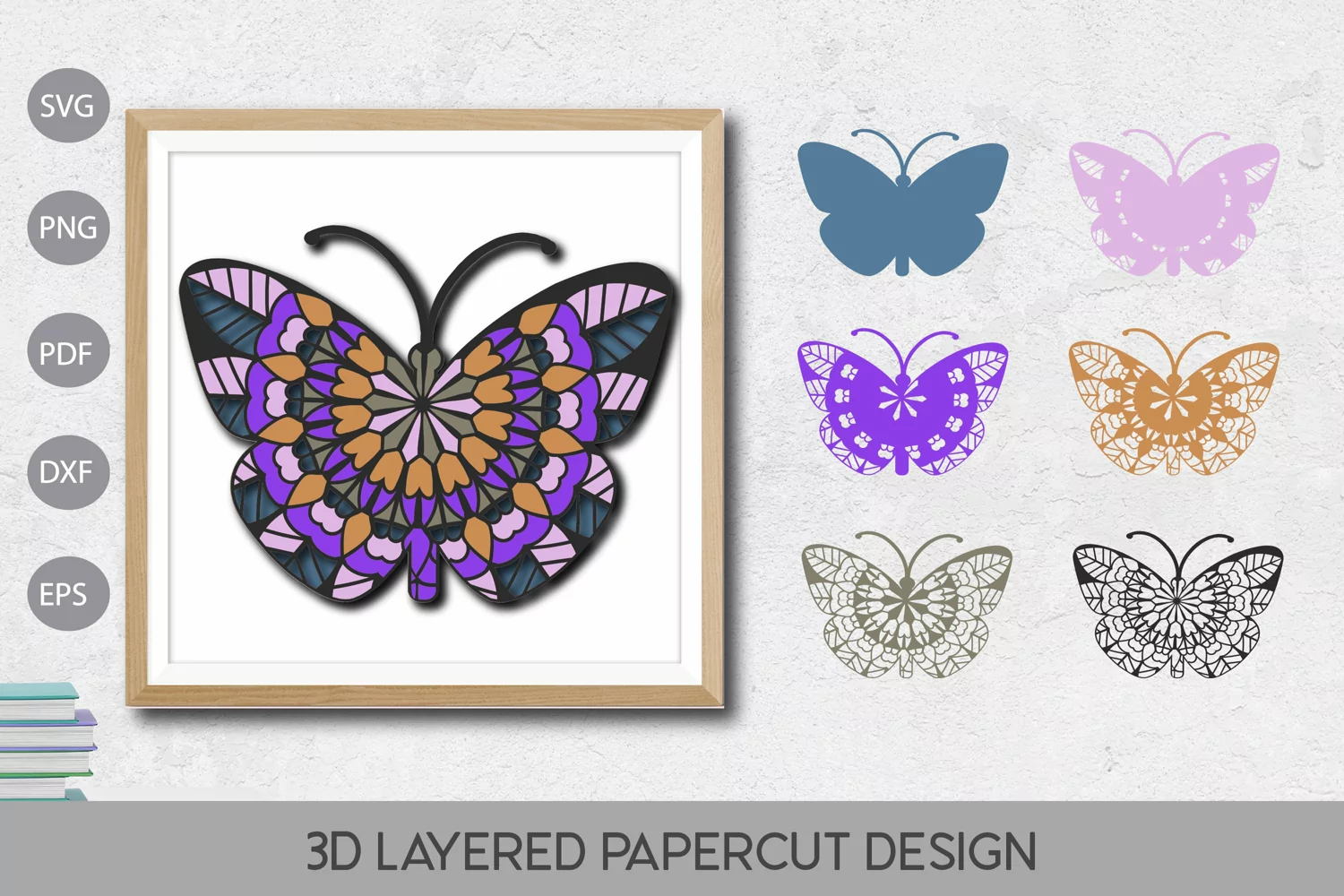Butterfly 3D Layered Paper Cut Template SVG Design example image 1