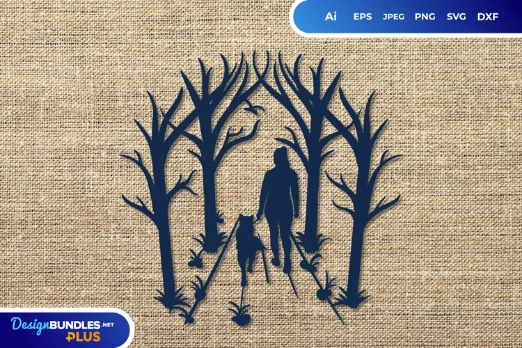 Dog and Girl Papercut SVG