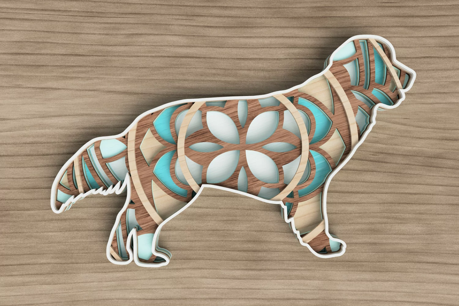 Digital multilayer file ( 7 layers), Golden retriever decor, specially prepared for laser cutting, paper cutting, cricut, CNC router, as well as other cutting machines.