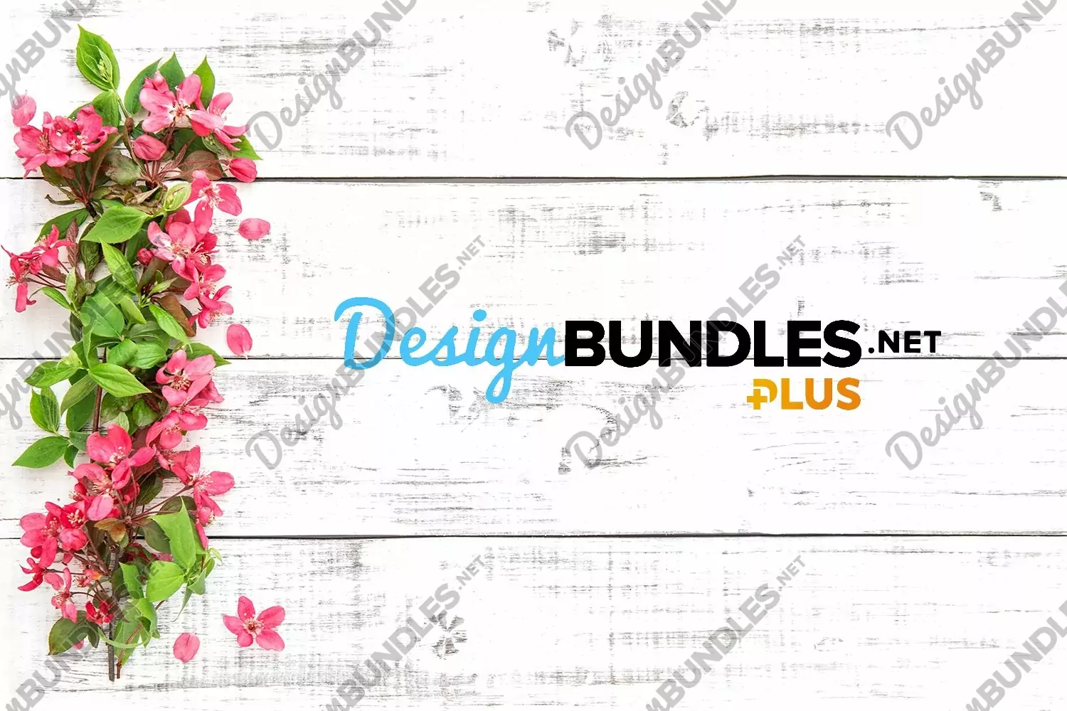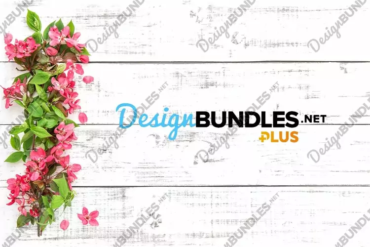 Spring blossoms with green leaves on bright wooden backgroud