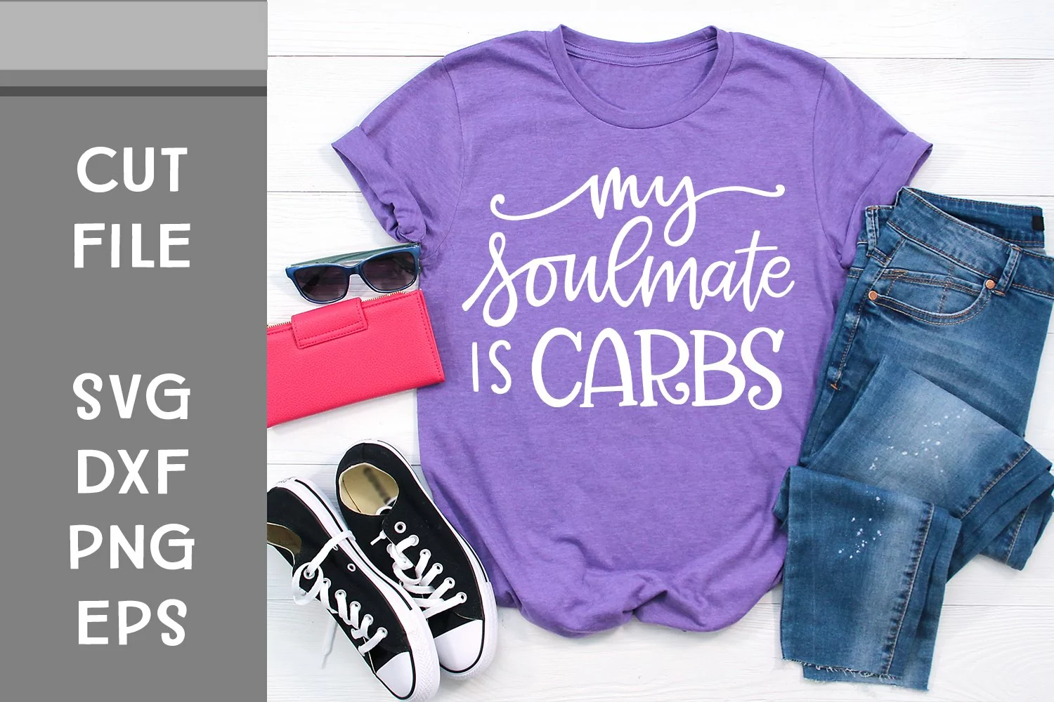 This is a hand lettered cut file. It reads, "My Soulmate is Carbs."