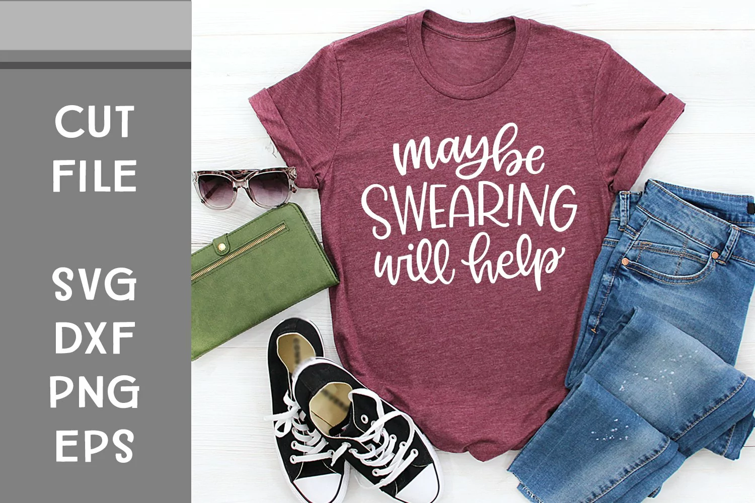 This is a hand lettered cut file. It reads, "Maybe Swearing Will Help."