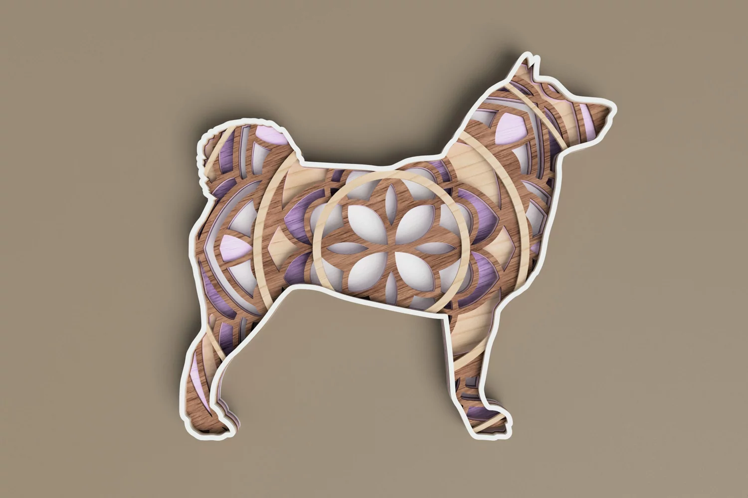 Digital multilayer file ( 7 layers), Akita Inu decor, specially prepared for laser cutting, paper cutting, cricut, CNC router, as well as other cutting machines.