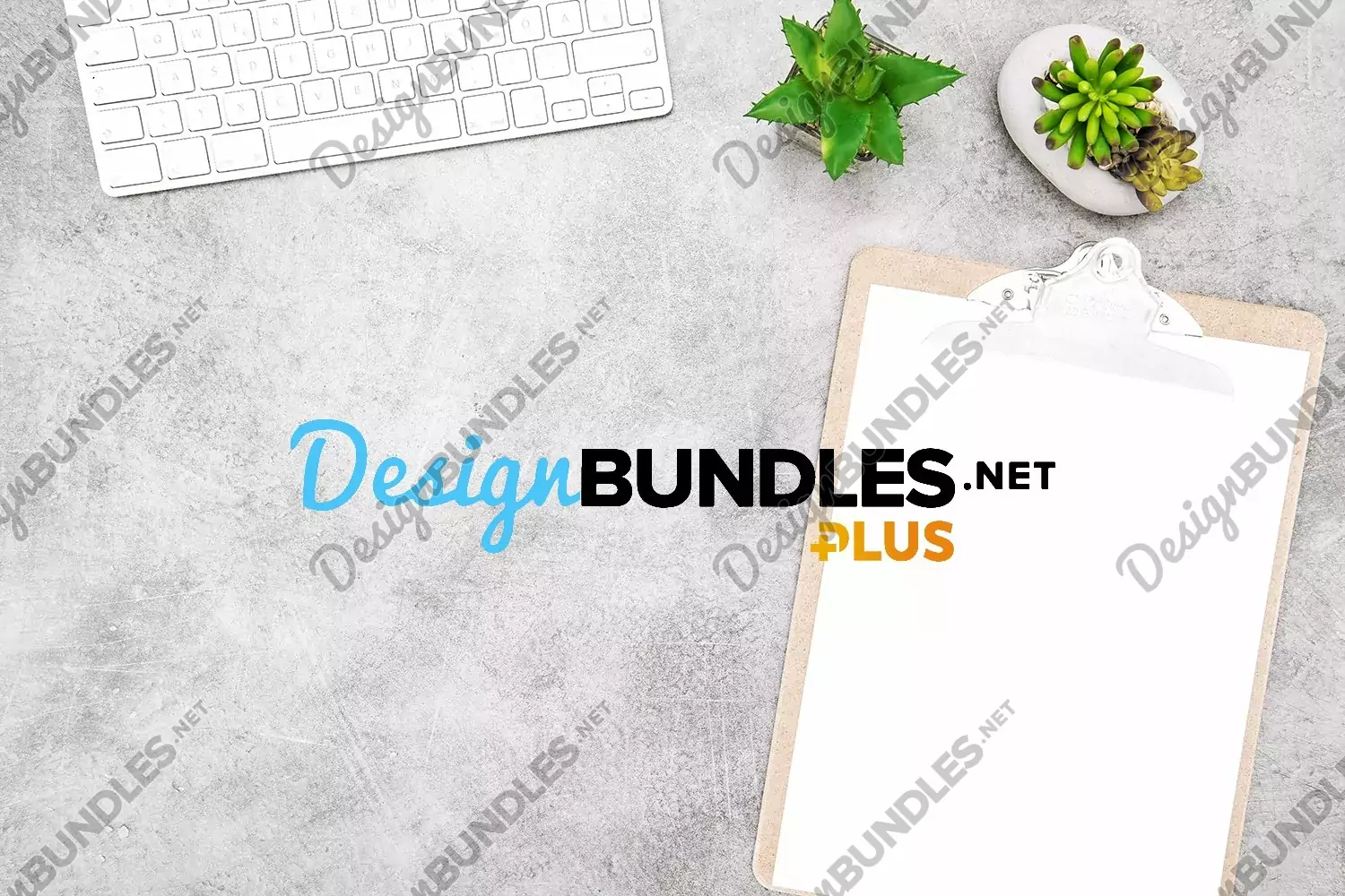 Workplace background with keyboard and green plants